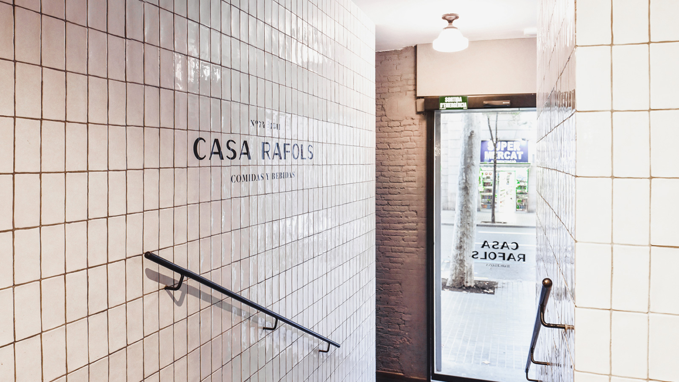 La fachada tuvo un cuidado especial con el objetivo de mantener la belleza y elegancia de la entrada y recuperarla para la nueva actividad. Por tanto, se realiz贸 una limpieza respetando el cromatismo, la textura y la soluci贸n constructiva original. Se restauraron los tres letreros, colocando el r贸tulo de la nueva Casa Rafols sobre los letreros de las puertas, mientras que se mantiene el r贸tulo original de la fachada. Adem谩s, se colocaron nuevas puertas de entrada en el acceso por Ronda Sant Pere, con una carpinter铆a fiel a la anterior. Se logr贸 as铆 realzar la belleza de un local se帽ero de Barcelona.